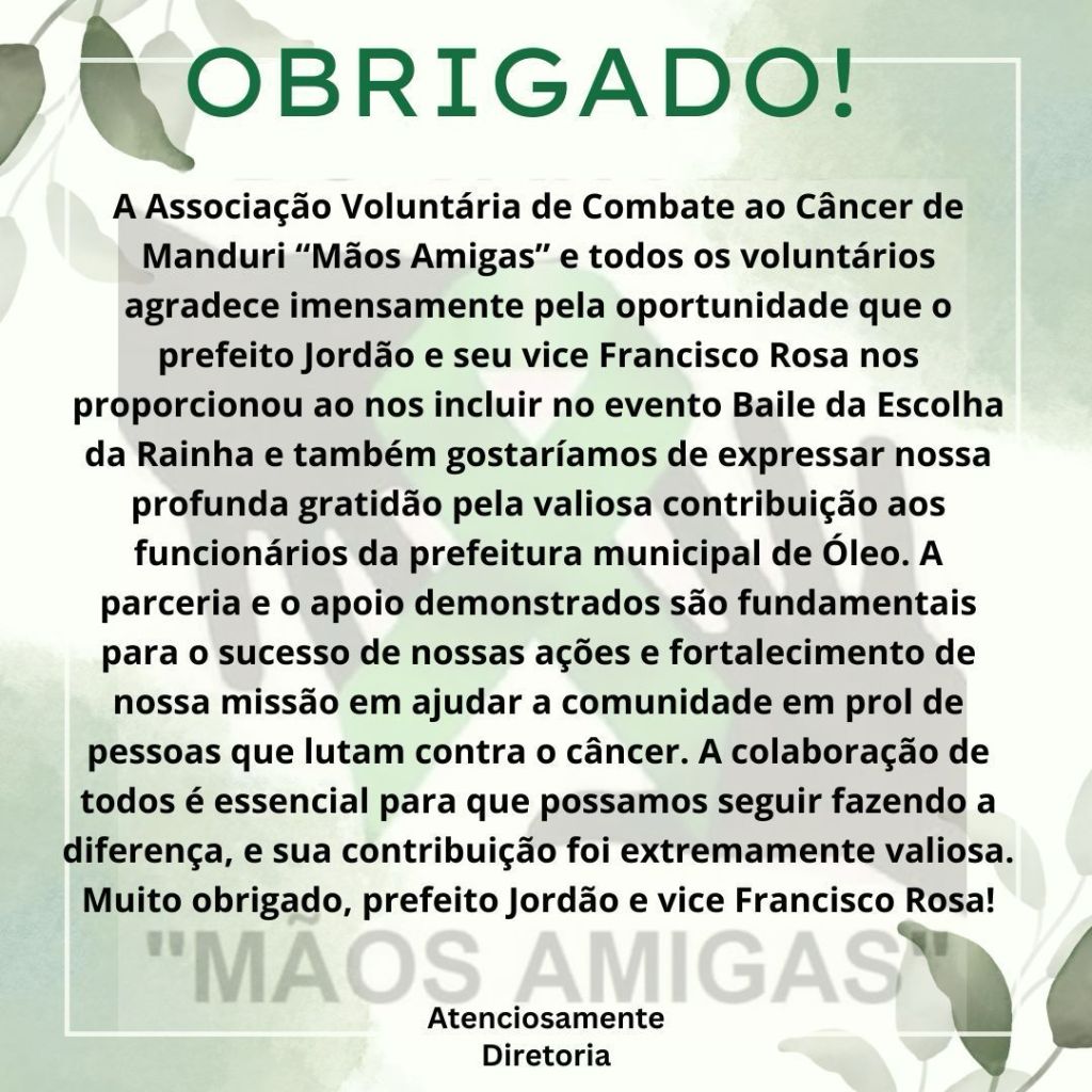 Mãos Amigas agrade a inclusão no evendo Baile da Escolha da Rainha